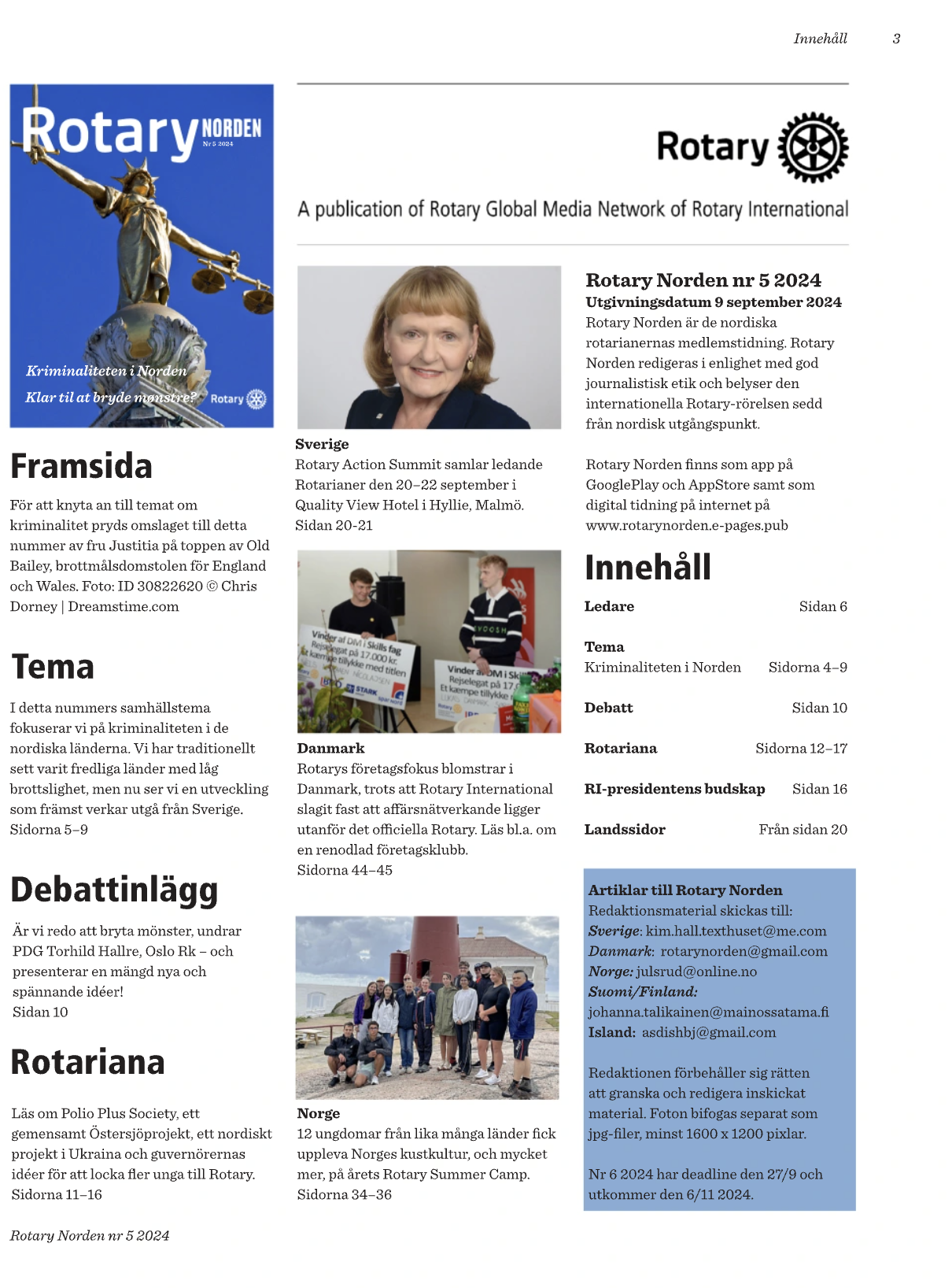 I detta nummers samhällstema fokuserar vi på kriminaliteten i de nordiska länderna. Vi har traditionellt sett varit fredliga länder med låg brottslighet, men nu ser vi en utveckling som främst verkar utgå från Sverige